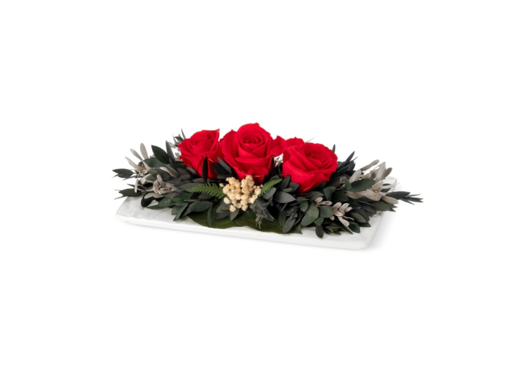 Aranže Chloe - Červené růže na keramickém tácku